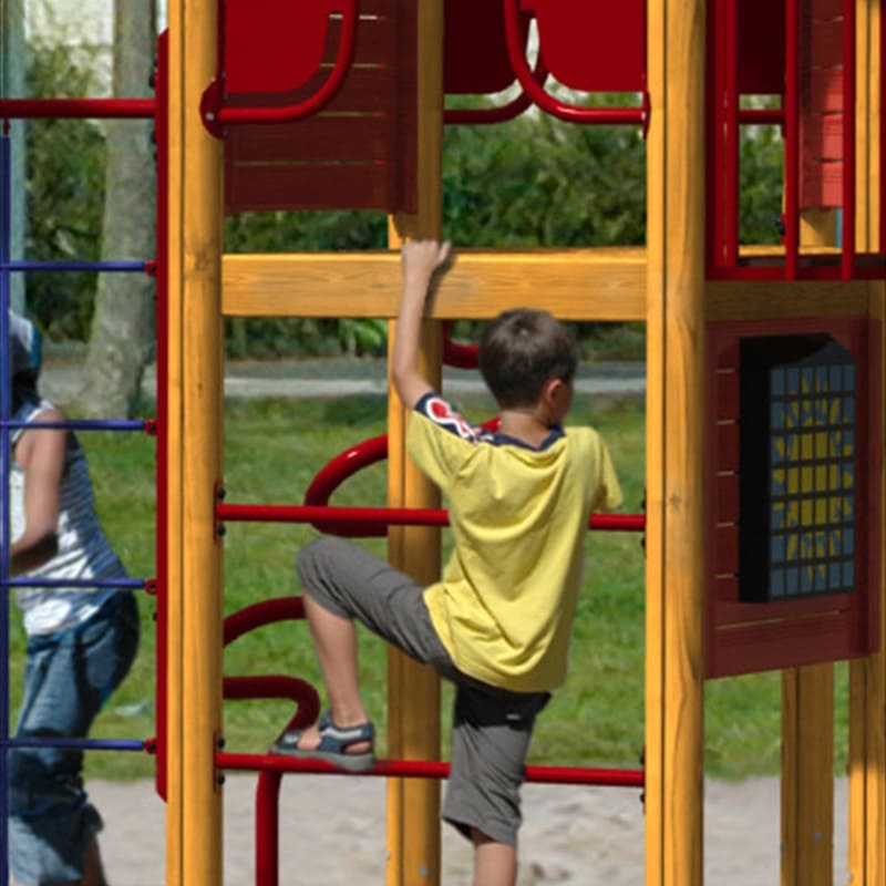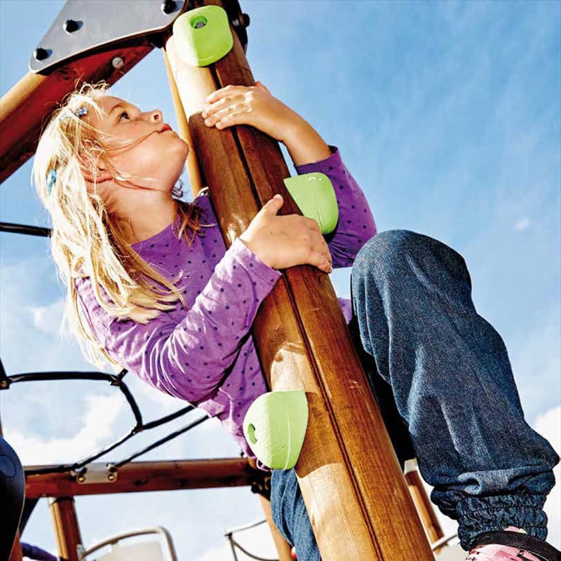 支柱をクライミングツリーに変身させて、スペースを有効活用できます。 グリップはしっかりと掴まることができるようにデザインされています。