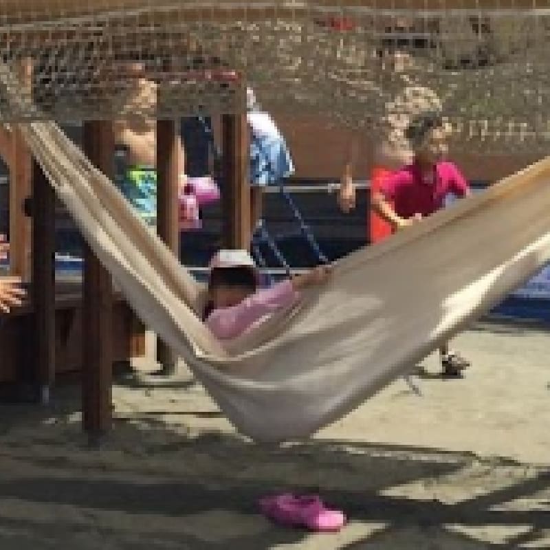 中で寝転びくつろぐ子、ハンモックを揺らしてあげる子。 自然と役割分担が発生し、リラックスできるだけでなく、自主性も養えます。