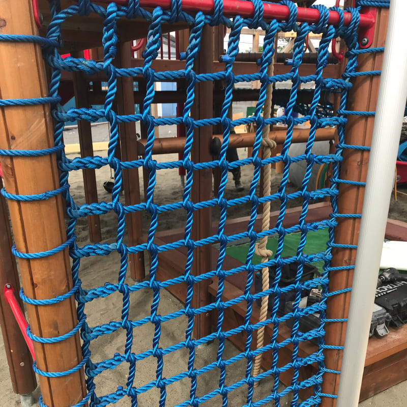 のんびりと空中散歩を楽しめるフラットネット。 登り遊びに慣れた子ども達にとってはちょっとした休憩スペースです。