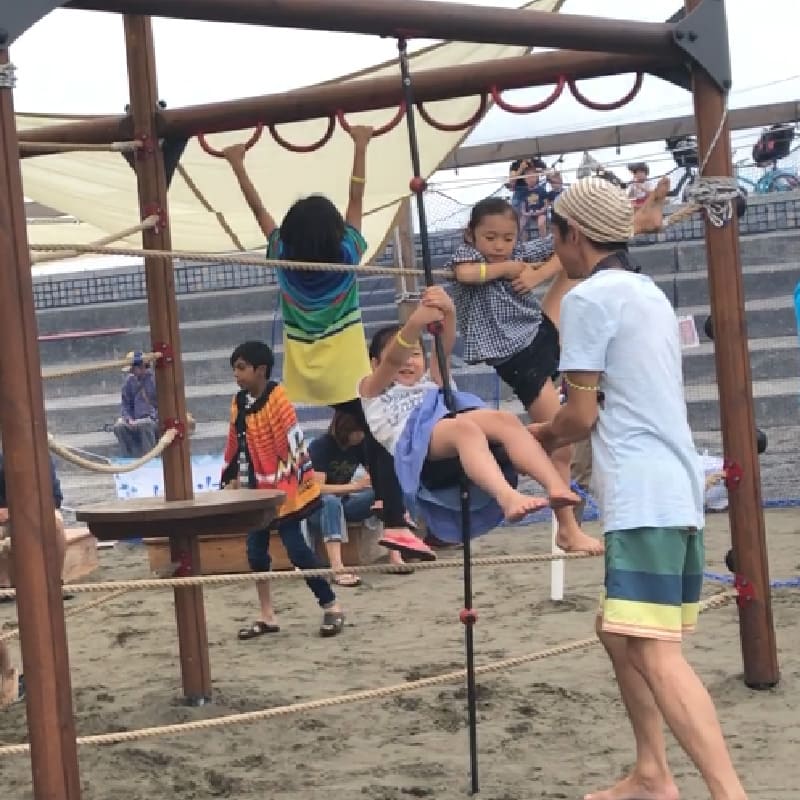 ロープ上を伝って渡るだけでなく、ぶら下がったり、足場にしたり、遊びながらバランス感覚を高めていきます。