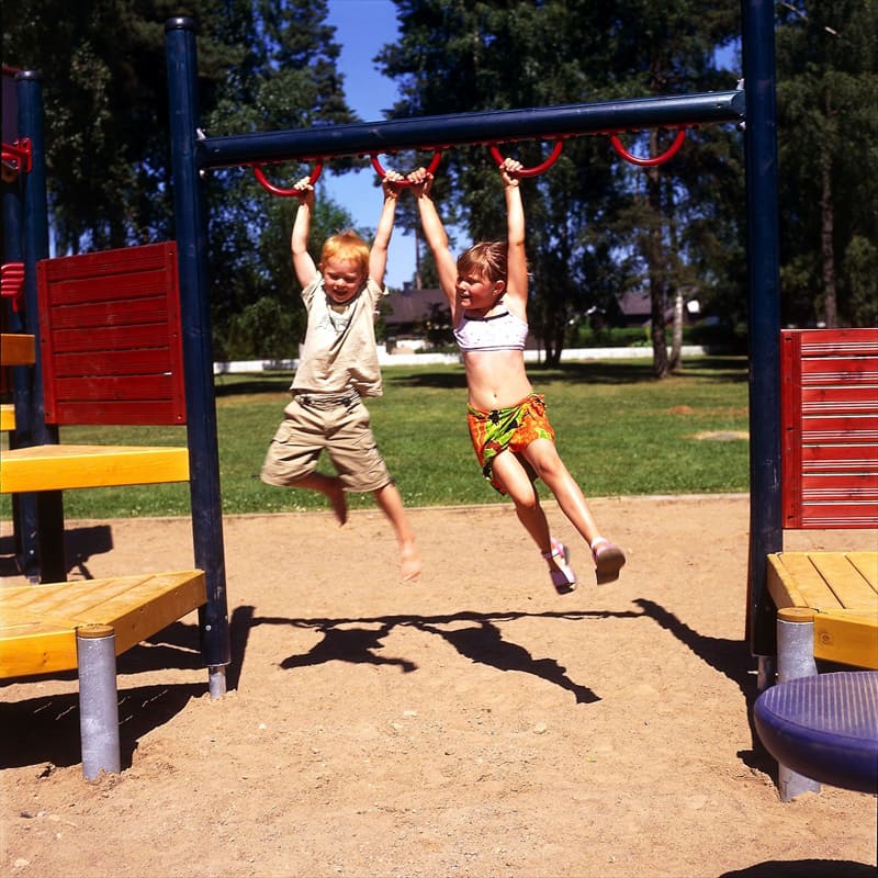 ぶら下がり、横移動する遊びです。全身を伸ばし体を動かすので、特に上半身の筋肉を使います。