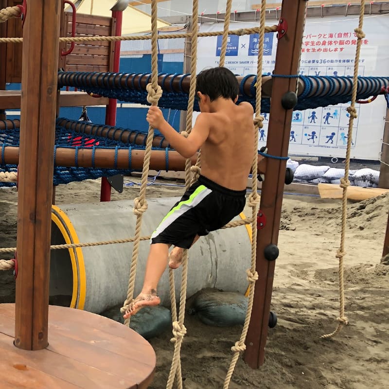 等間隔に張られた不安定なネットを全身で登ることにより、身体能力と、バランス能力、 次に手足を置く位置を考える予測能力などが鍛えられます。