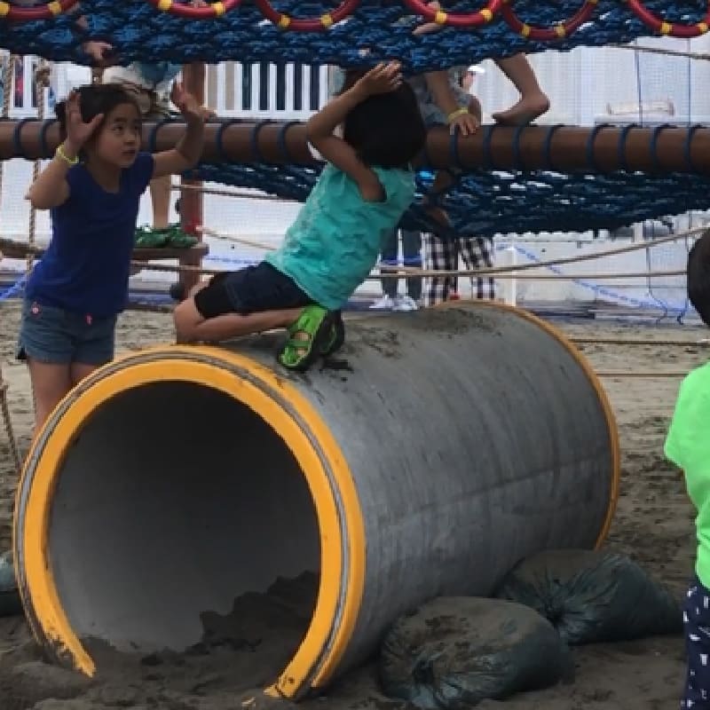 上に登って足場にしたり、中を潜って移動したり。 狭い土管の中は隠れ家にすることも。 子ども達の想像によっていろいろな遊び方が生まれます。