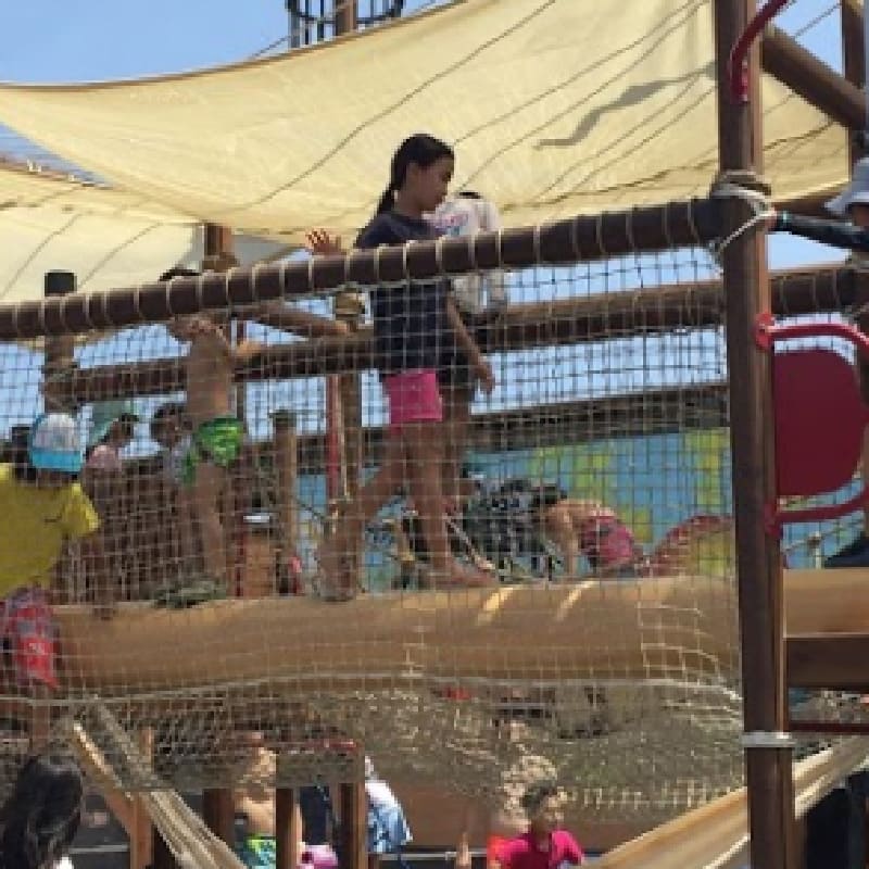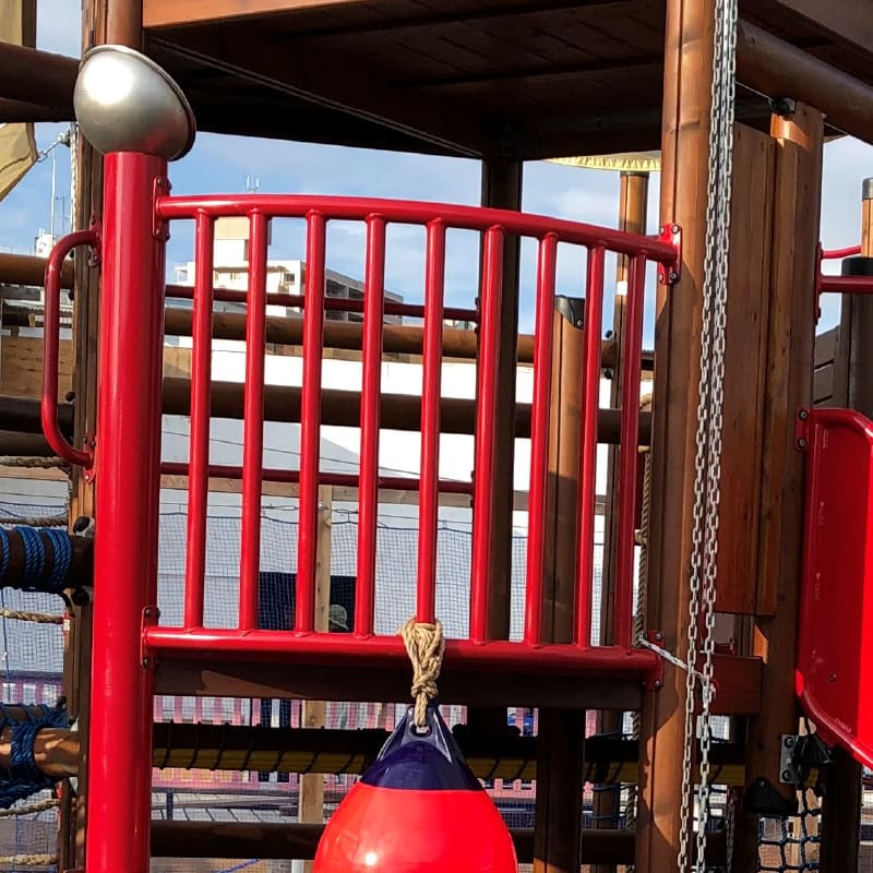 船を模したベンチは船員になりきれるごっこ遊びにもなり、一息を入れる休息スペースにもなります。