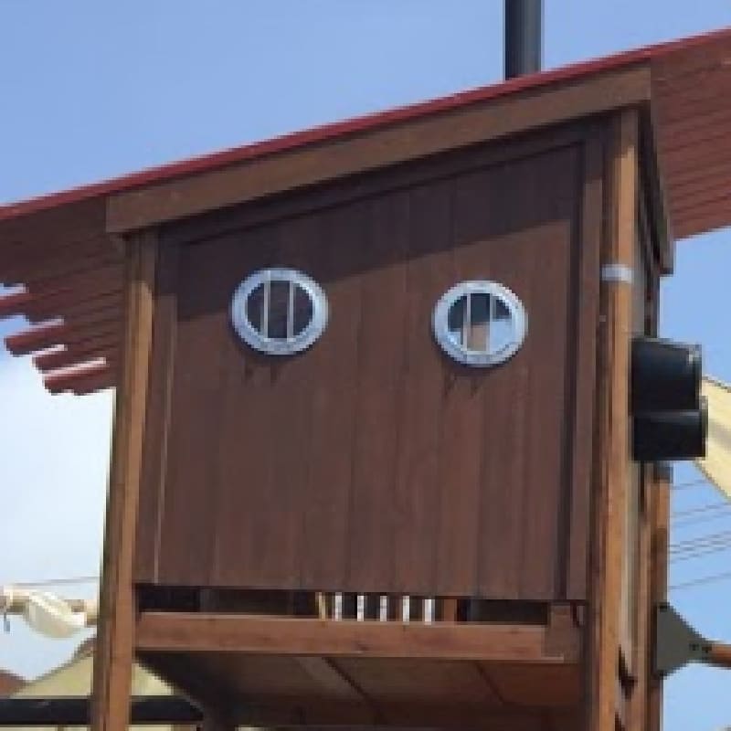 不思議な形の窓は覗いてみたいというワクワクを駆り立てます。 高い視点から見える世界は子ども達の想像力を養います。